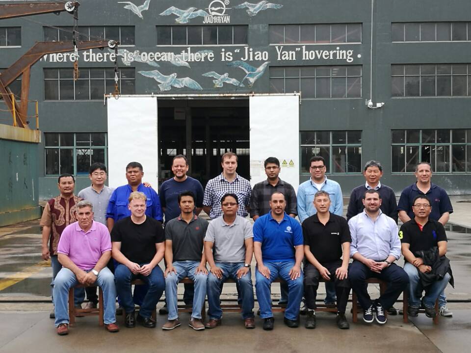 17名船舶服务精英人员来到PG线上平台,对厂家设备的新设计,新产品进行深层次的学习和服务训练,成为佼燕救生设备的优秀服务商,为佼燕的客户提供更优质,更专业,更及时的服务.